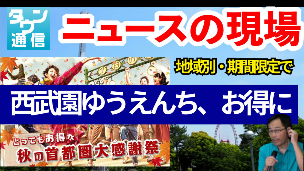 西武園ゆうえんちが、首都圏に在住・在学・在勤の人対象に、地域・期間別で「入園+アトラクションフリー」の「1日レヂャー切符」を値引き販売する。 東京都は9/30(火)~10/5(日)が対象期間。 「切符」は、大人(中学生以 […]
