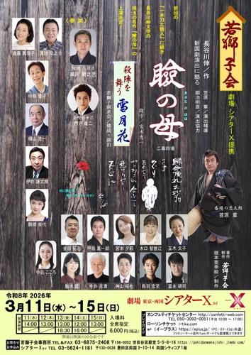 『瞼の母』『殺陣を舞う 雪月花』が2026年3月11日 (水) 〜 2026年3月15日 (日)にシアターX(シアターカイ)(東京都 墨田区 両国 2-10-14)にて上演されます。 チケットはカンフェティ(運営:ロング […]