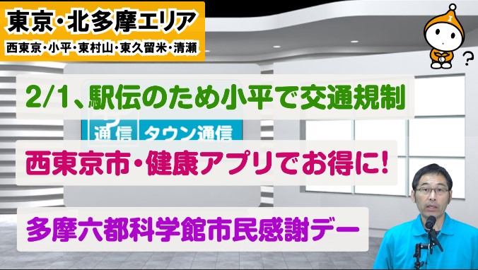 1/29配信「聴くタウン通信」 ニュース回! 小平市の交通規制や多摩六都科学館・市民感謝デーなど