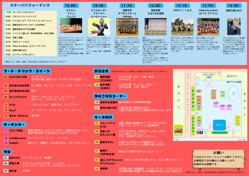 商店街の魅力を知ってほしいと西東京市の2つの商店街が共同で実施する「ひばりフェスタ」が、12月7日㈰午前10時から午後3時まで同市谷戸イチョウ公園で開かれる。