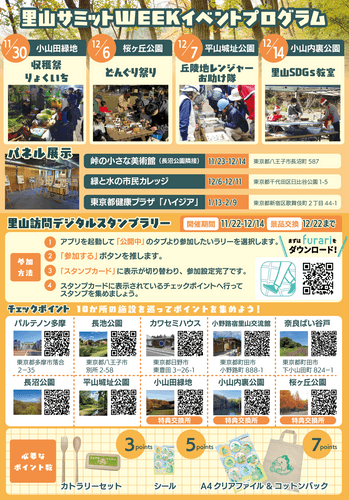 11月22日~12月14日はTOKYOつながる里山サミットWEEKと題してたくさんのイベントを用意しています。