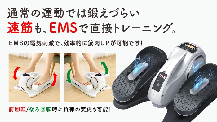 「EMS搭載 ステップウォーカー®」は、EMSモードを使用することで、ウォーキングだけでは鍛えられない「速筋」へ直接アプローチすることが可能です。