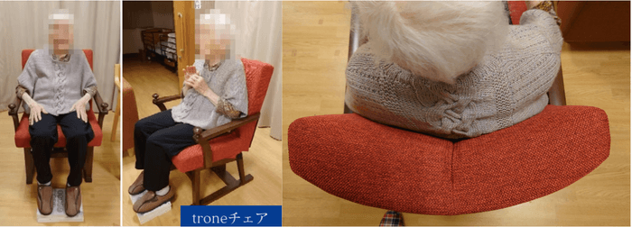 troneチェアは、円背で背中が丸くなった高齢の方でも、