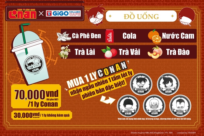 「名探偵コナン」とコラボしたノベルティ付きドリンクを期間限定で販売いたします。ご購入1点につき、オリジナルコースターがランダムで1枚付いてくるドリンクを販売いたします。