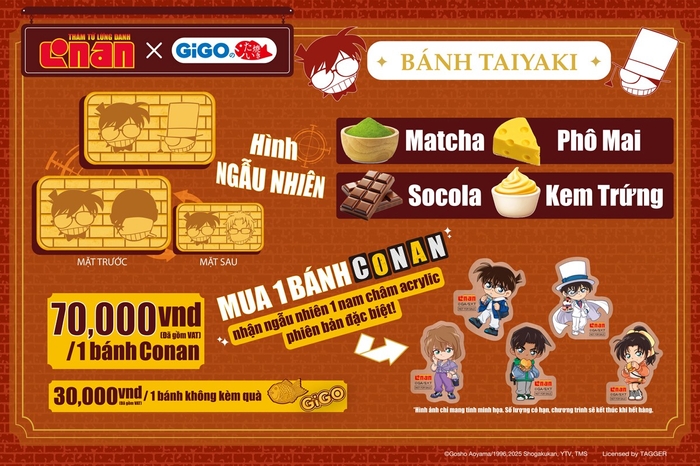 「名探偵コナン」とコラボした「コナン焼き」を期間限定で販売いたします。「コナン焼き」ご購入1点につき、ランダムでオリジナルアクリルマグネットを1個進呈いたします。