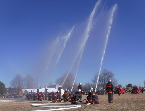 1月11日、西東京市消防団出初式、保谷庁舎跡地で~トイレカーを初披露