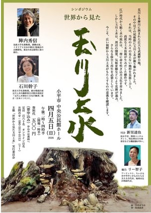 玉川上水をまたぐ形で都道建設が予定されているなか、4月5日(日)小平市中央公民館で、シンポジウム「世界から見た玉川上水」が開かれる。