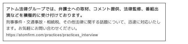 アトム法律グループは、2008年に東京永田町に設立され、刑事事件・交通事故・相続税の対応に力を入れております。