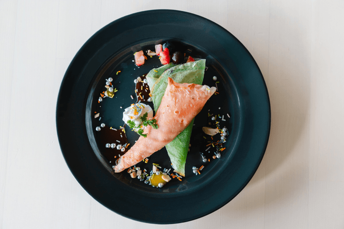 カラフルな生地で作ったクレープに、ホイップクリームやカスタードクリーム、ブルーベリー・リンゴンベリーの北欧らしいジャムを添えて味わう、自分だけのオリジナルスイーツ。