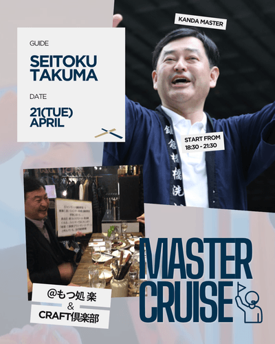また、神田の老舗店主がガイドブックには載らない路地裏や歴史のエピソードなどを、杯を傾けながらご案内するはしご酒ツアー「MASTER CRUISE(マスタークルーズ)」も同時開催し、「酒の聖地」とも呼ばれる、東京・神田の日本の酒文化を発信していきます。