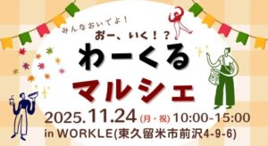東久留米市の福祉作業所などが焼き菓子や手作り小物などを販売する「わーくるマルシェ」が、24日㈪㉁午前10時から午後3時まで、同市にある「WОRKLE」(前沢4の