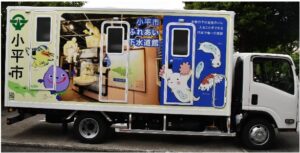 9月25日(木)、小平市が購入した災害用トイレトラックが、同市役所でお披露目された。 洋式の水洗トイレ4室と多機能トイレ1室を備えた自走式のトラックで、車体には同市のマスコットキャラクター「ぶるべー」や地域宣伝隊「コダレンジャー」、「ふれあい下水道館」などがデザインされている。 購入費は約2650万